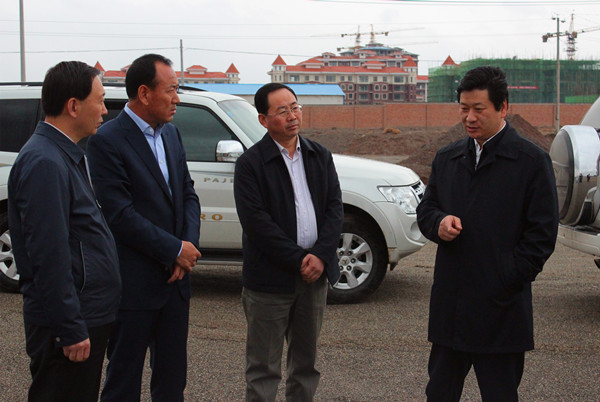 4月18日上午,,,,市委书记张智全,,,,市委常委、市委秘书长吕林邦来我集团公司金地年鲜项目建设工地举行调研指导事情。。。。。