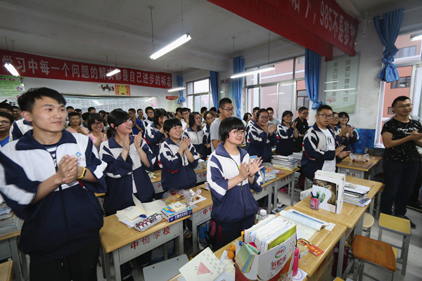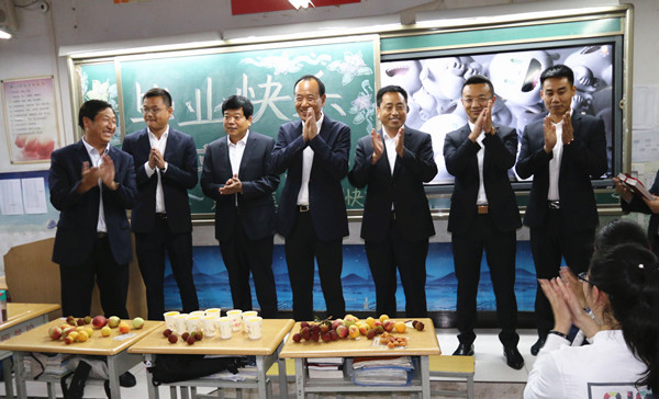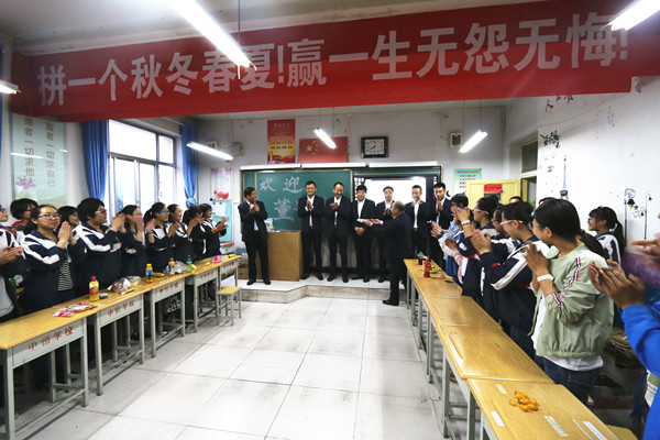 房忠董事长一行,,,,,以亲热随和的交流方法,,,,,让高三的同砚们倍受鼓舞,,,,,有用缓解了考试压力 。 。。。同砚们热情洋溢,,,,,体现将以优异的心态迎接高考,,,,,拼尽全力考上理想的大学 。 。。。