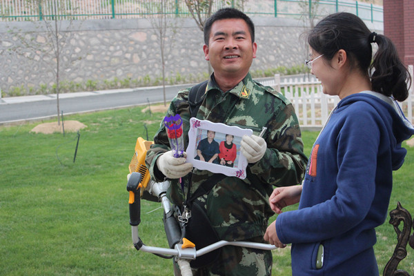 员工收到礼物后合影