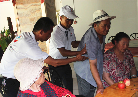 7月28日下昼,,,xh6388新濠天地自愿者协会15名自愿者来到平川区福利院,,,亲热探望生涯在那里的老人,,,并为他们送去“清凉”。。。。。