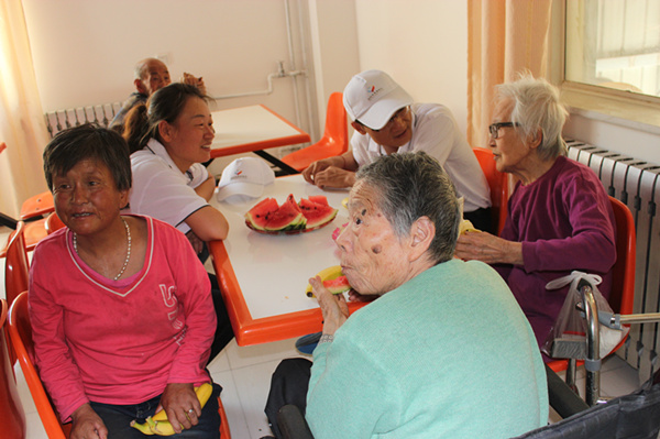 时代,,,自愿者们向老人赠予了西瓜、香蕉、桃子等水果,,,并与老人举行相同交流,,,勉励老人们快乐生涯,,,安享晚年。。。。。接过自愿者们送来的慰问品,,,老人们饱含沧桑的脸上绽露着笑容,,,对xh6388新濠天地自愿者协会的爱心行动连连赞美。。。。。刚到福利院,,,自愿者们便最先忙碌起来,,,有的陪老人语言谈天拉家常,,,有的帮老人扫除卫生,,,就像到了自己家里,,,陪自己的怙恃亲人一样,,,忙活的十分起劲,,,自愿者们忙碌的身影和着盛夏的暖阳,,,在福利院的屋内屋外往返流动着,,,成为一道亮丽的景物线。。。。。