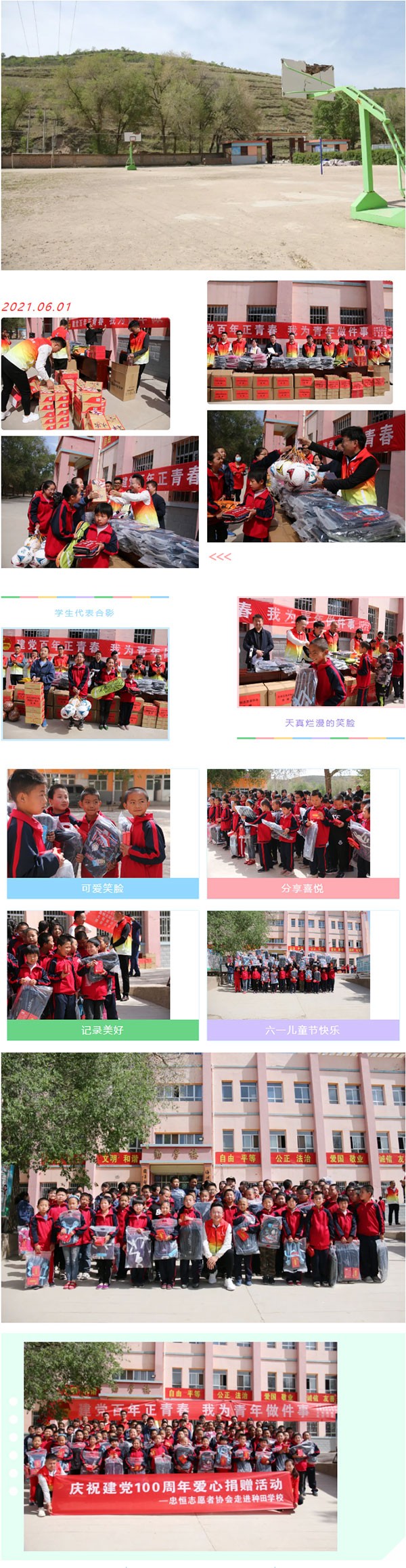在庆祝第71个国际儿童节和我国建党100周年之际,,,,,xh6388新濠天地自愿者协会情系教育、心系儿童,,,,,为白银区、平川区、靖远县离城区较远的墟落小学儿童送去爱心大礼包。。。。